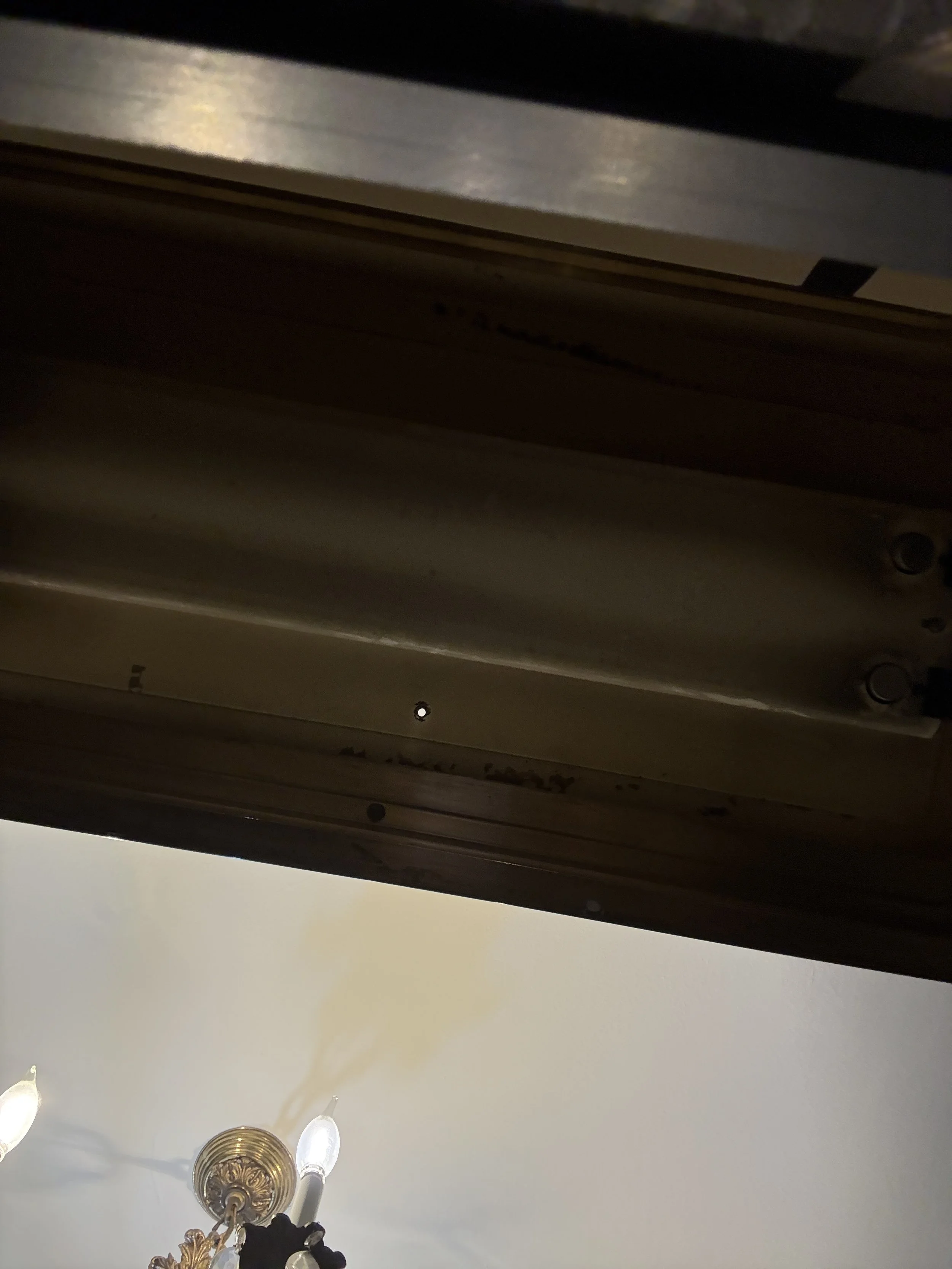 Door does close but is in original condition without both latches.