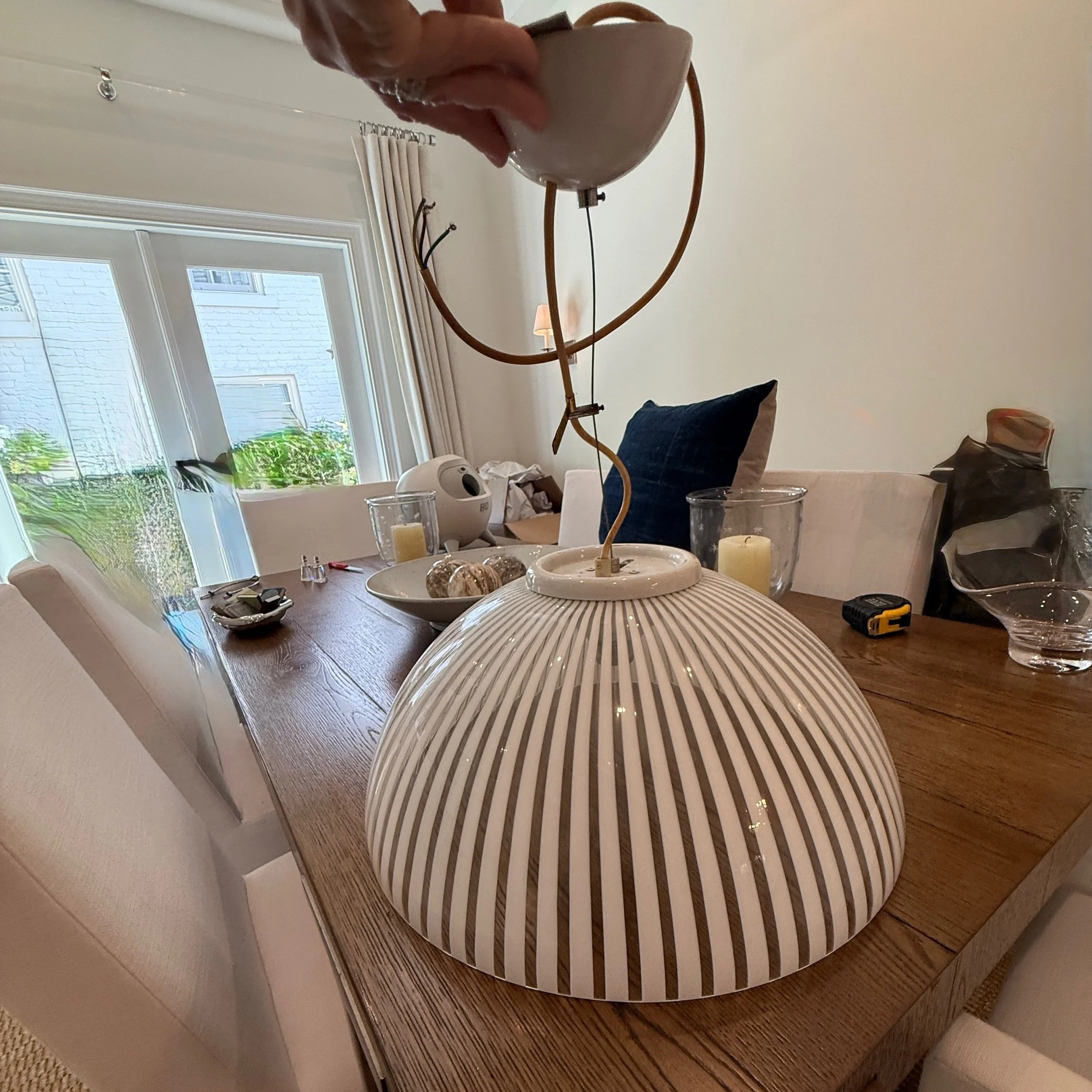 The Fontaine by AERIN embellishes mid-century aesthetics with a modern feel. The conical linen shades provide clean lines and warm lighting for any space.