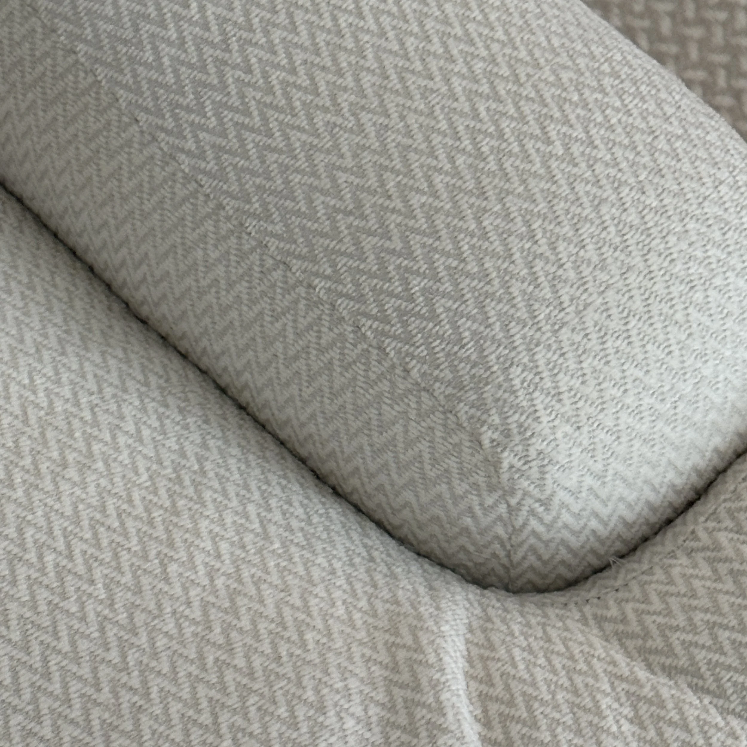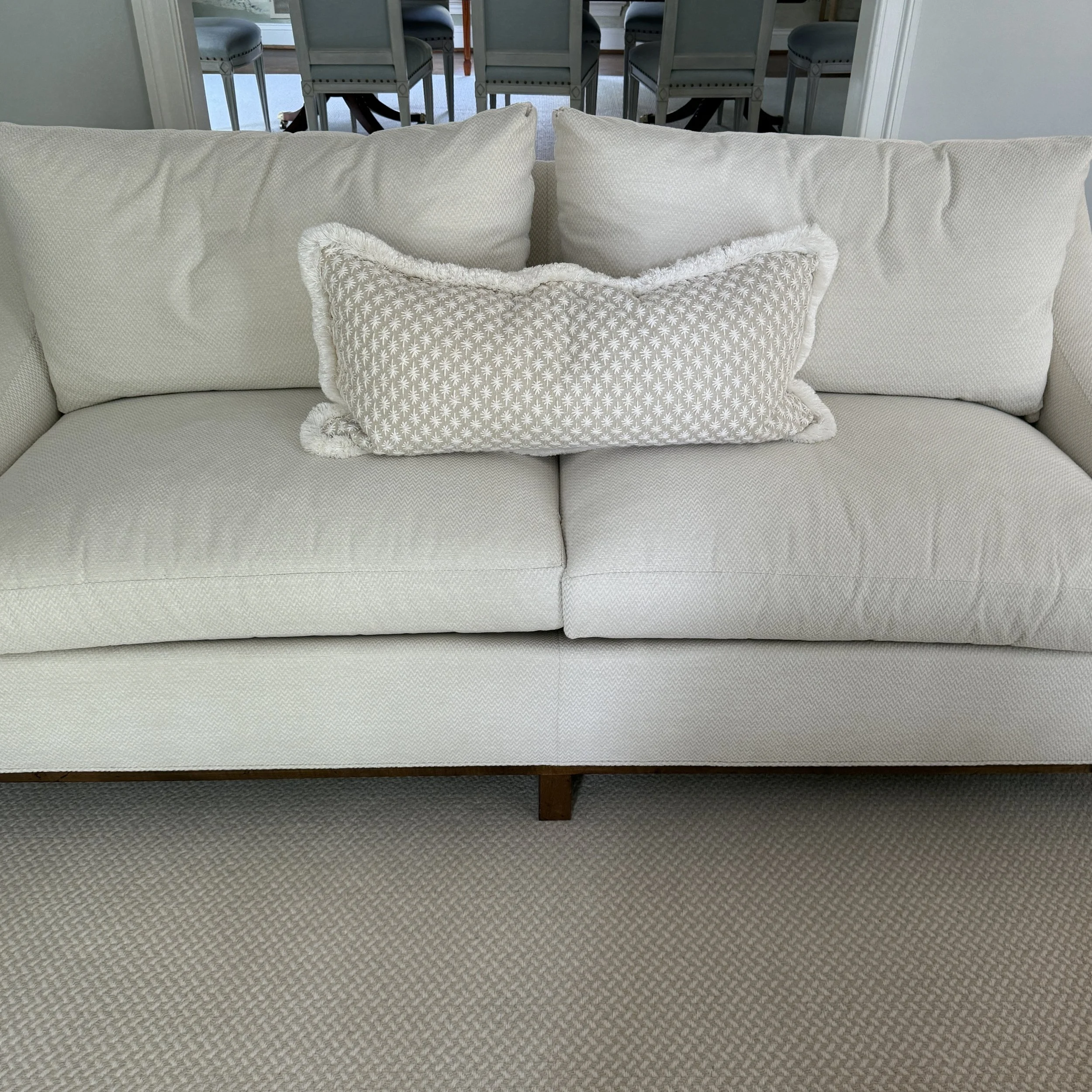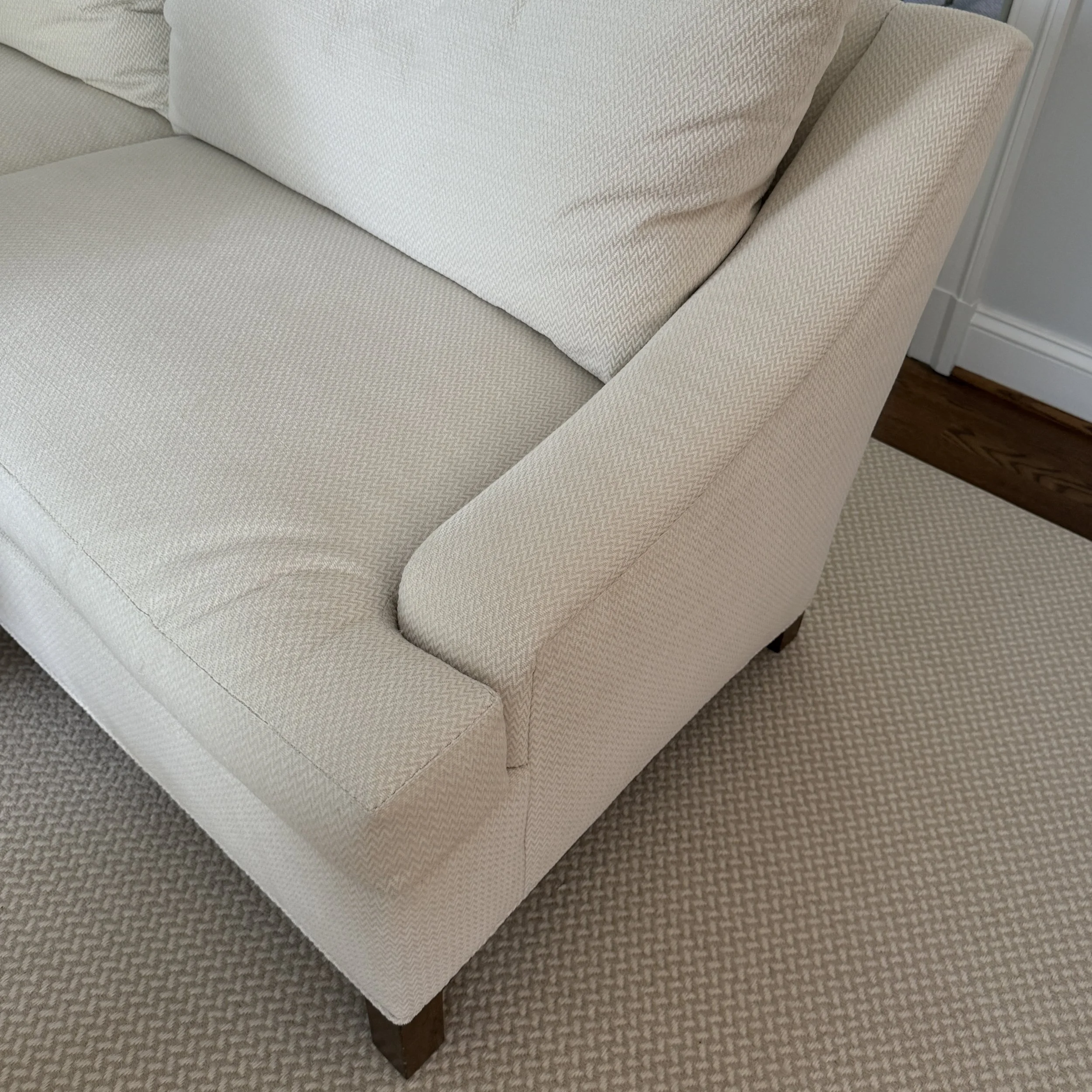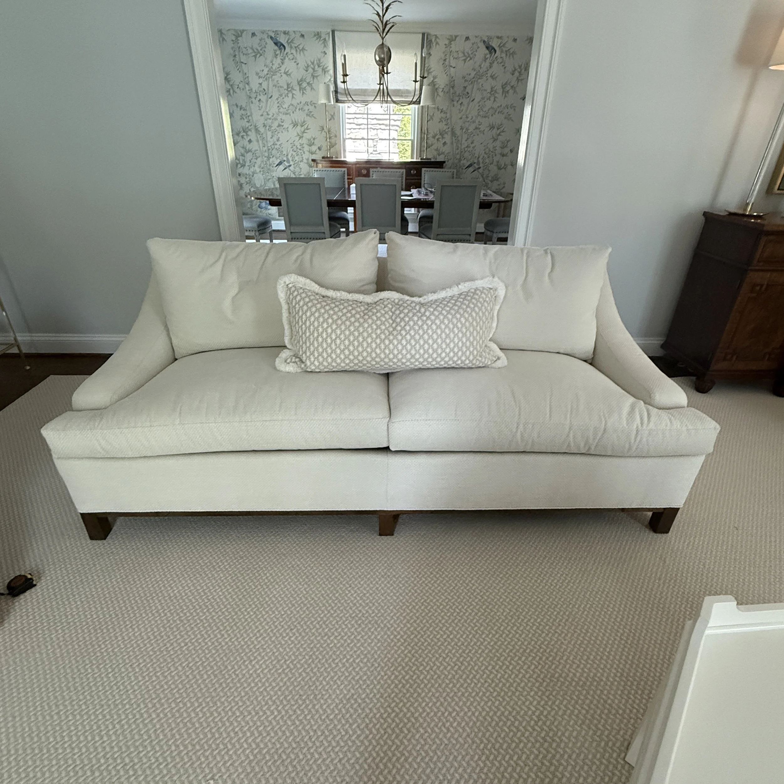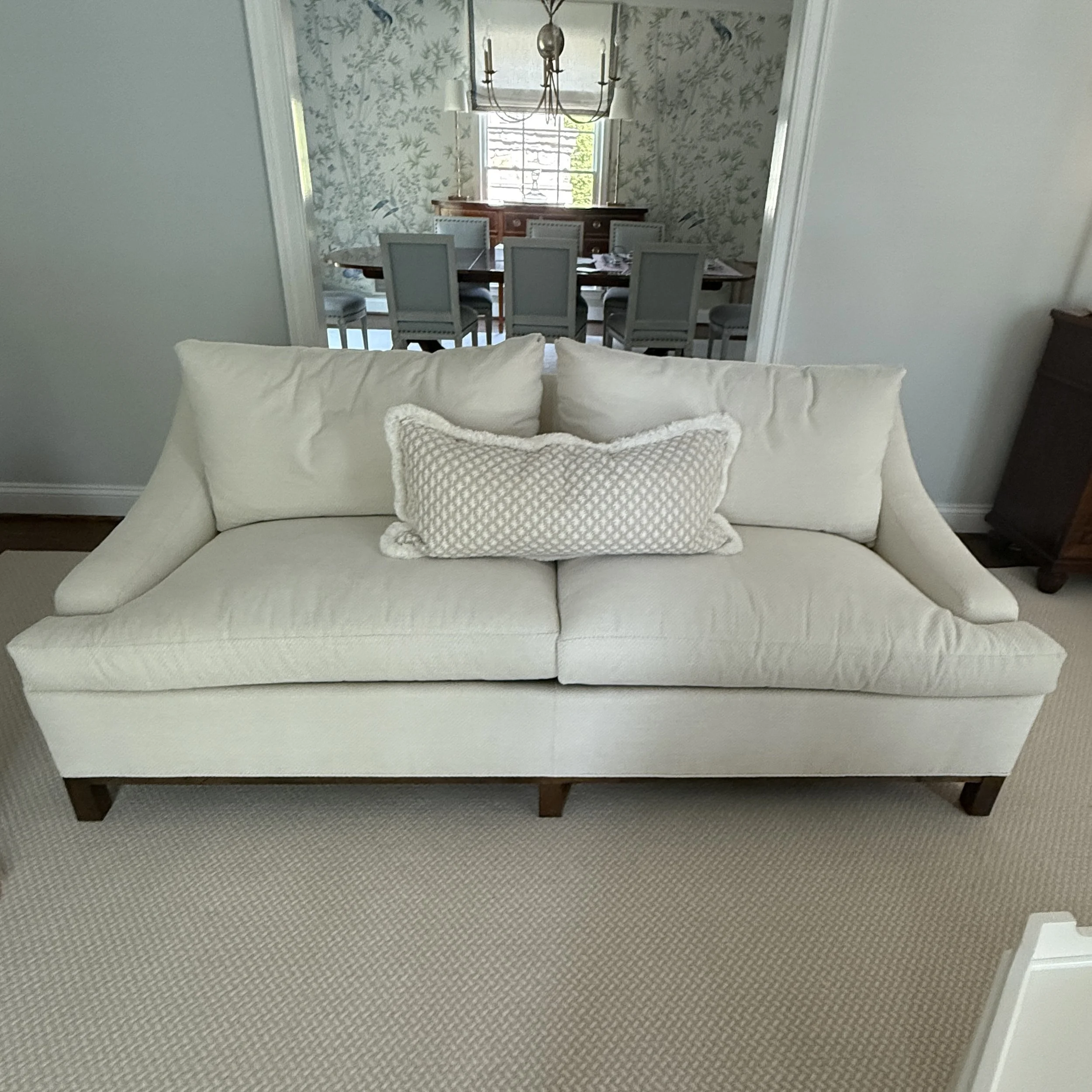 We can’t think of a style home in which this would not work. The fabric, Thibaut Alpine Chevron, is subtle, and the shape of the sofa is not too modern and not too traditional. It is in great condition too! Spring down seat cushions and neverdown back cushions.