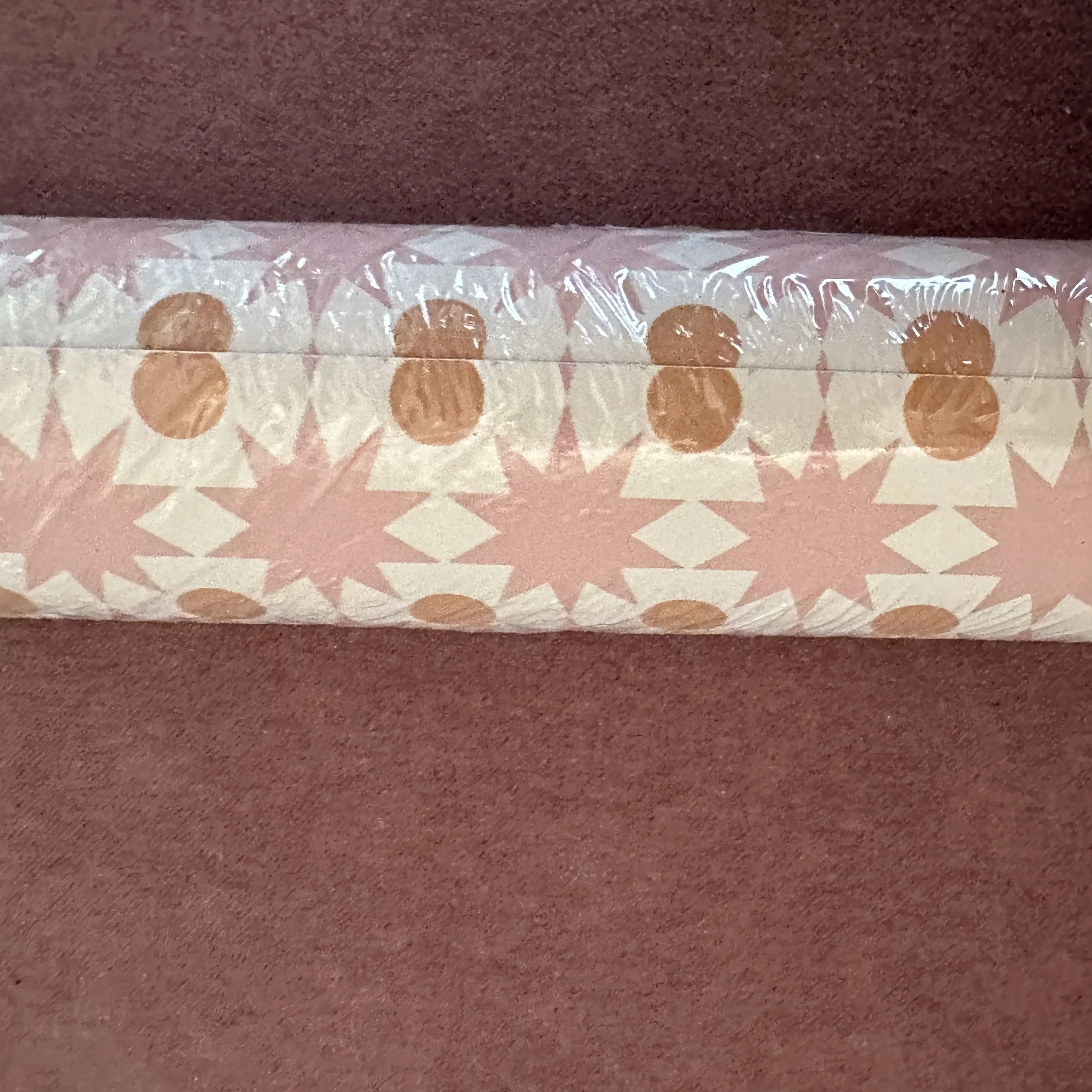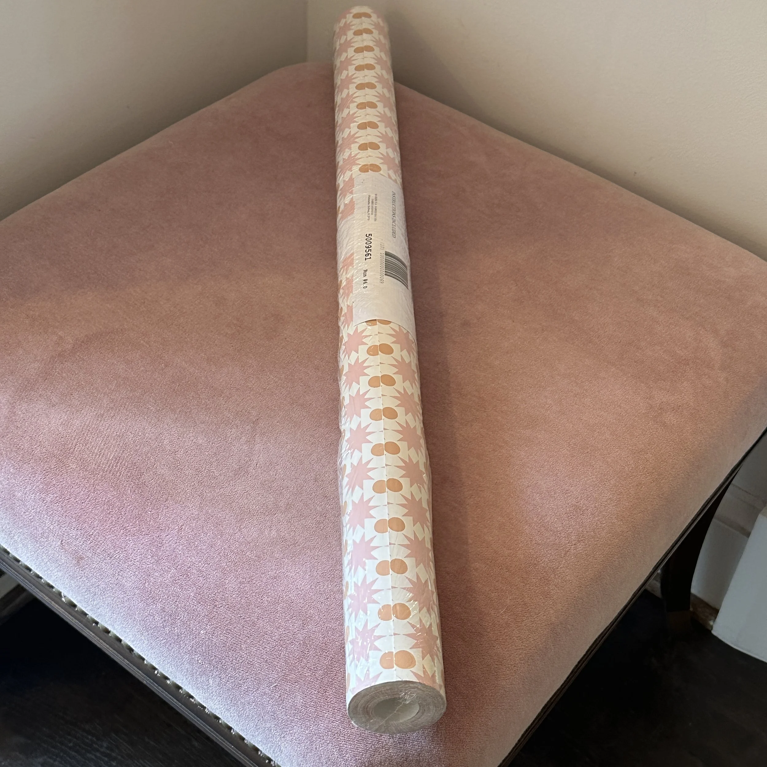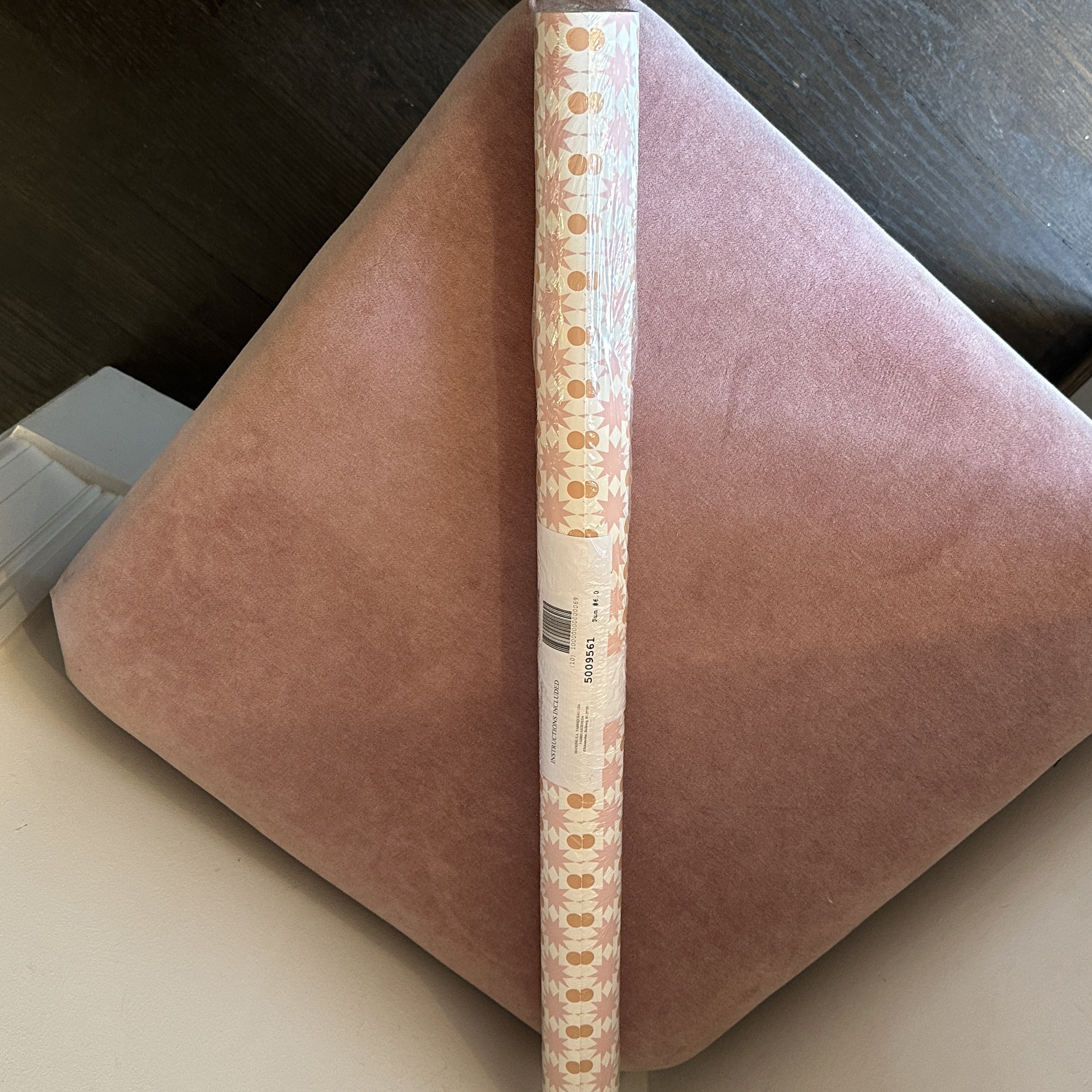 This pattern is fun! Pink starburst pattern with orange dots, all on a white ground. Joyful!